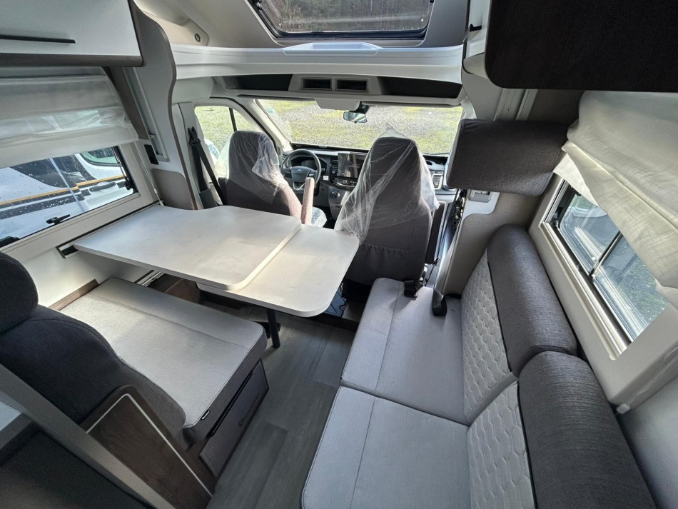 Idéal pour un couple ou une famille, ce profilé 4 places offre confort et praticité : lit jumeaux à l'arrière transformable en lit XXL et lit pavillon tout confort pour 2 adultes ou 2 enfants