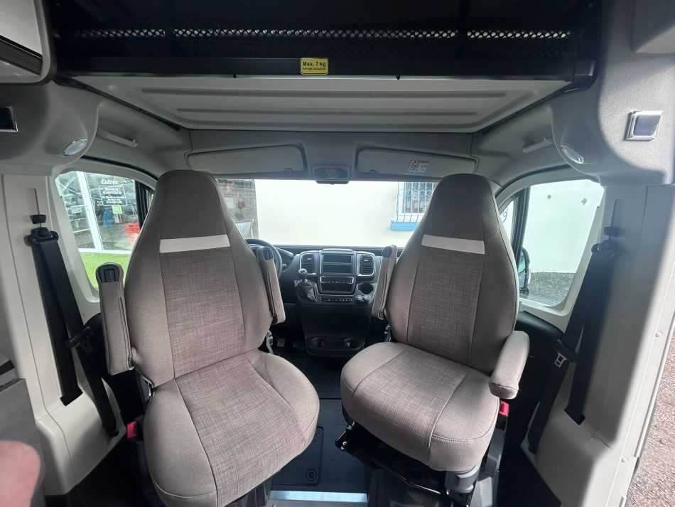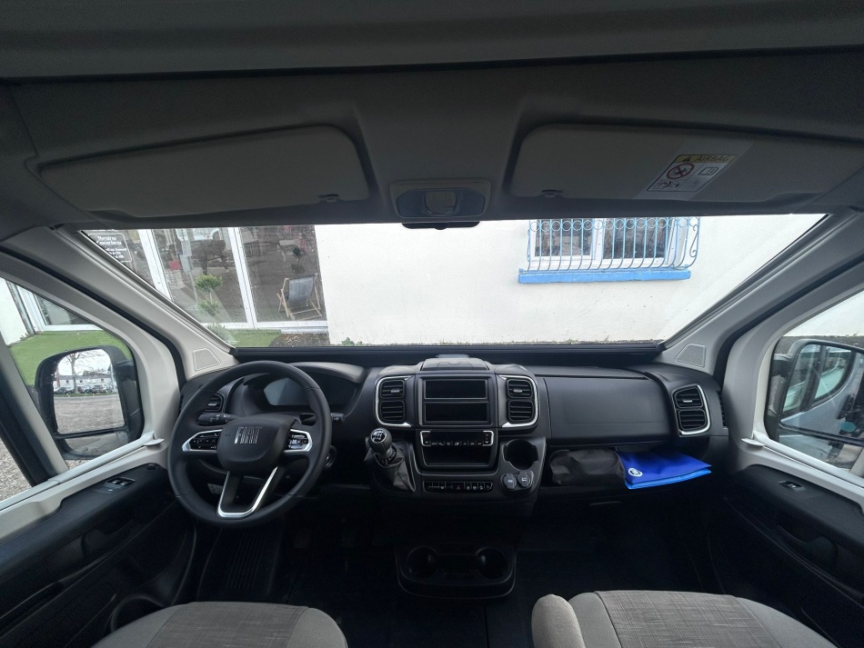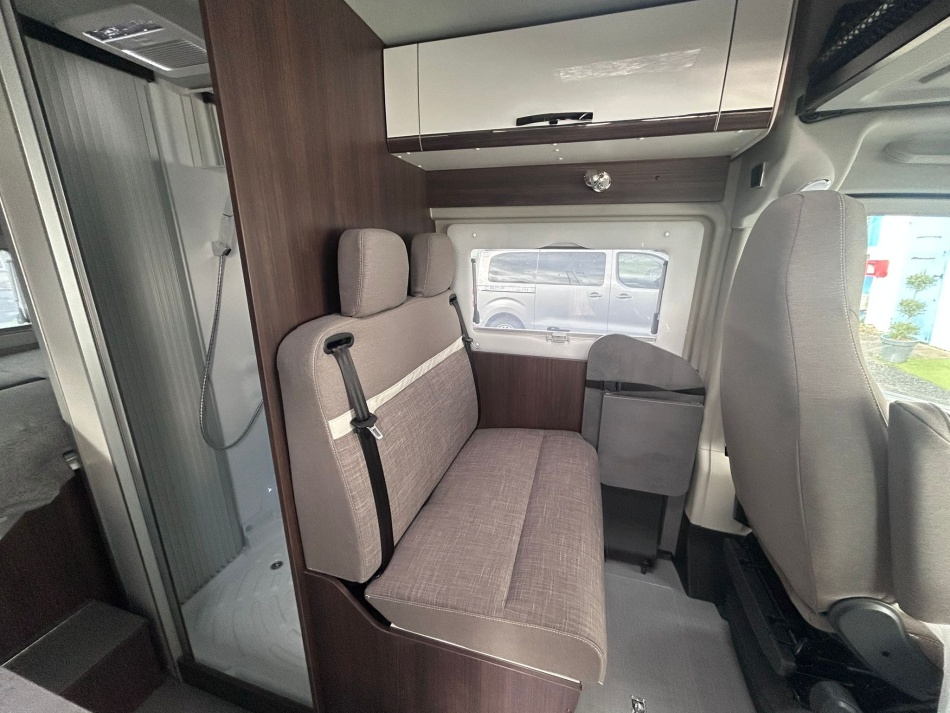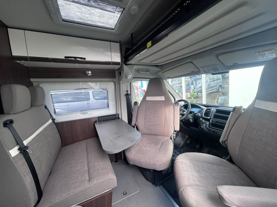 PACK ALL IN : ESB, ABS, ASR, Hill-Holder, Climatisation cabine manuelle, Airbag passager, Rétroviseurs extérieurs dégivrants réglables électriquement, Siège passager réglable en hauteur, Tissus de sièges cabine identiques à l'habitation, Obturateur de cabine (pare-brise et latéraux), Compteurs chromés, Booster de batterie cellule 25A, Régulateur de vitesse, Volant cuir, Feux de jour à LED, Prise USB intégrée au tableau de bord, porte-gobelets, Pré-équipement radio avec antenne DAB dans le rétroviseur extérieur, Commandes au volant, Feux antibrouillard, Capteurs de pluie et de luminosité, Grilles d'aération avec contour gris, Seconde clé avec télécommande