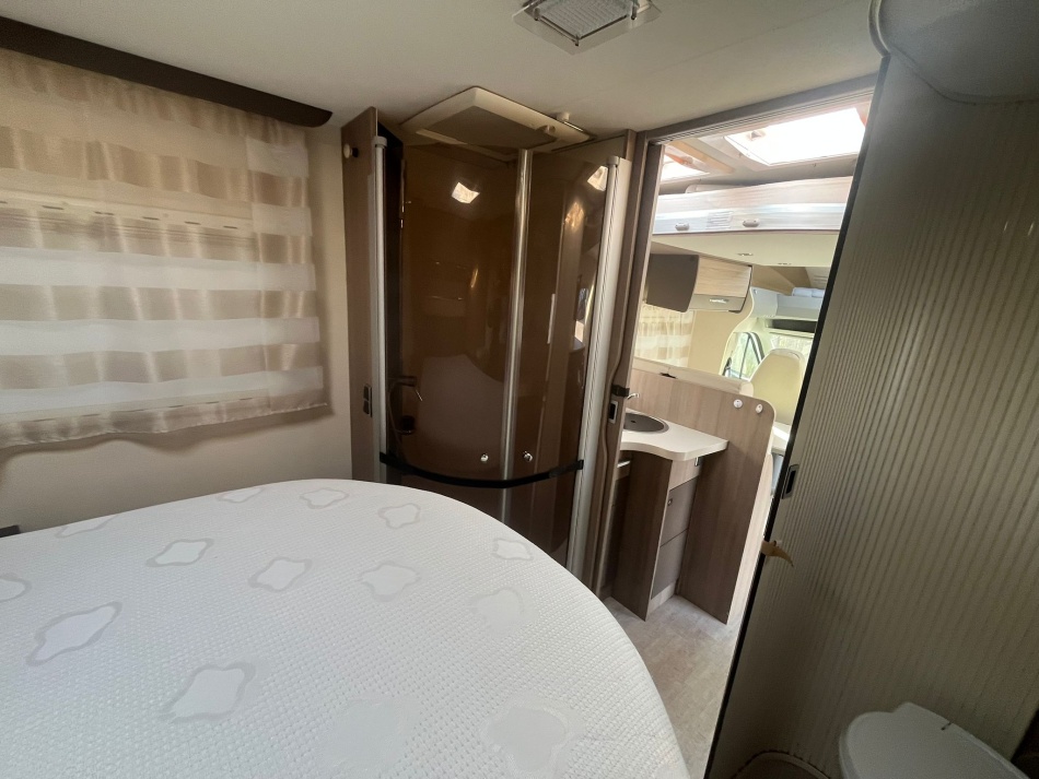 Il offre un grand lit central, une belle soute de rangement et une salle d’eau avec douche et WC séparés pour plus d’intimité